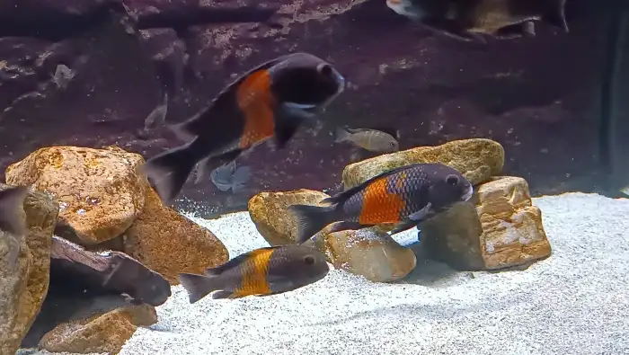 Prodám Tlamovce Mooreova - Přenechám skupinu cca 40-ti kusů,velikost od 4-8cm,velké po prvním výtěru