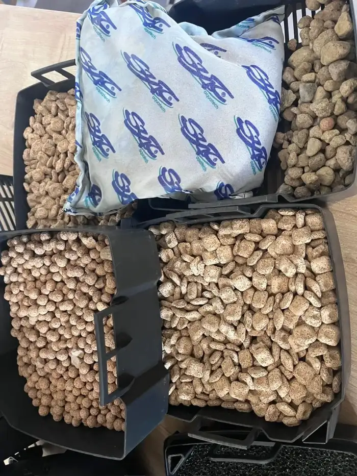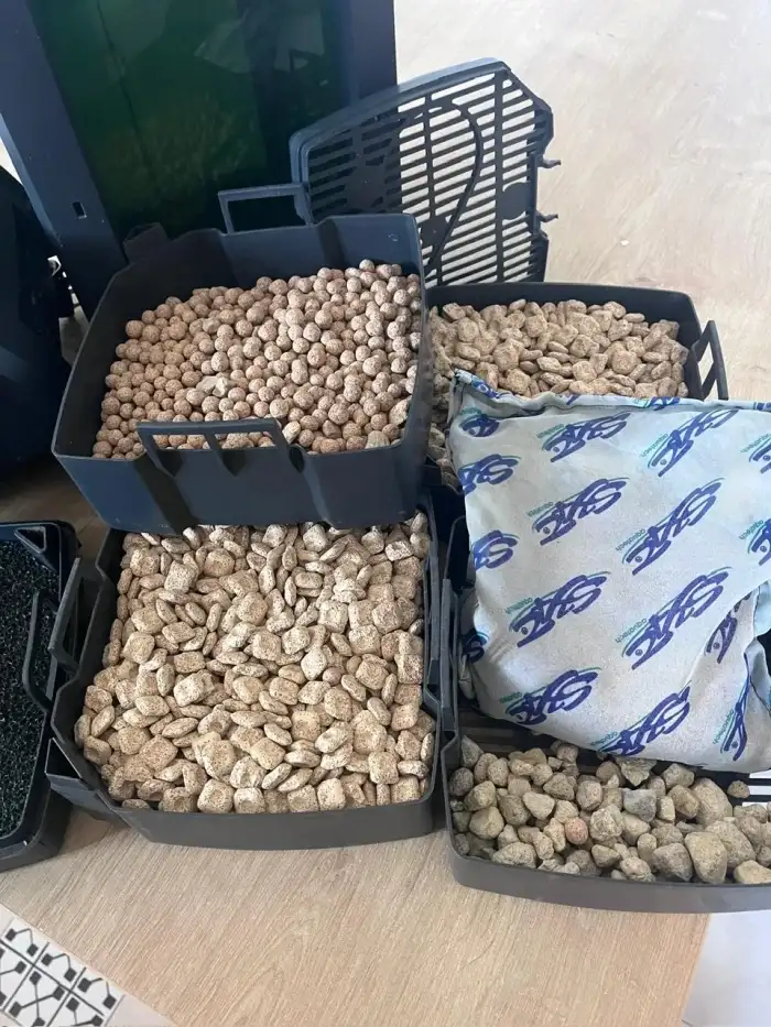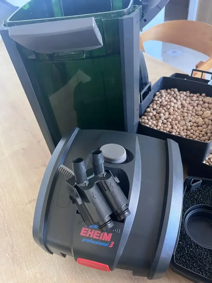 Zdravím, nabízím k prodeji, Vše používané ale plně funkční Topítko Hailea 100 W, Vnitřní italský filtr Duetto 150 s novou houbou Vzduchovací motorek se dvěma výstupy New Air NW22 Nástave...