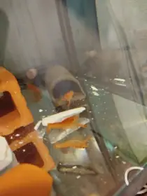 Je asi jeden a půl roku starý,má přibližně 10 cm i s kompletním vybavením(akvárium,filtr,plastové rostliny)