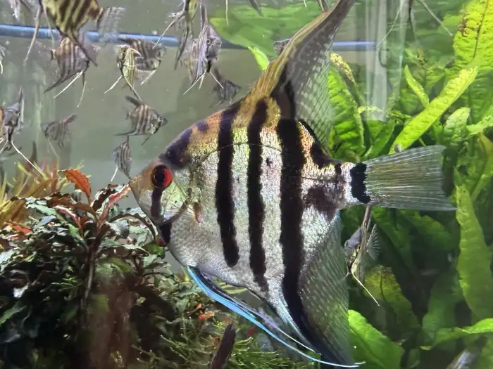 Prodám Skaláru amazonskou - Prodám 12ks skalár. Stáří 9.měsíců. 8-9cm v těle (bez ocasu) Cena cca 5.tis./ 12.ks