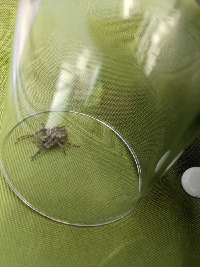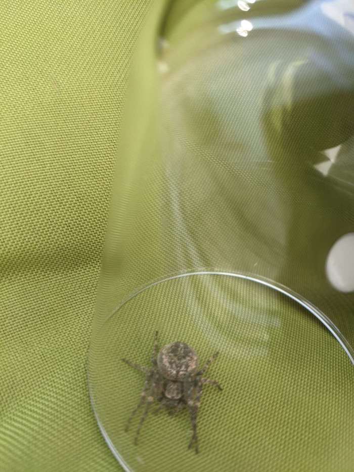 Omlouvám se všem, co mají rádi pavouky, ale jsem arachnofob a prostě jsem se nepřiměla tam za ním sáhnout a otevřít to víko, abych ho zachránila, moc se omlouvám, každopádnědne bych ráda věděla, co mě to navštívilo, protože jsem v životě takového pavouka neviděla. Děkuji😅
