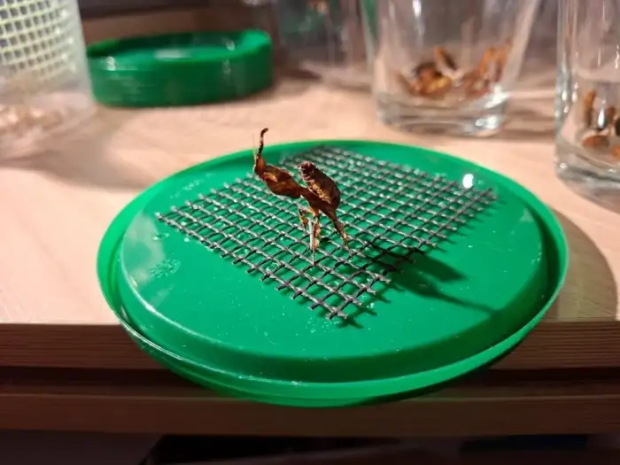 Kudlanka Phyllocrania paradoxa ( L4 - subadult ) jedinci z nepříbuzného křížení