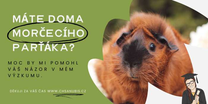 Obracím se na vás s prosbou o spolupráci při sběru dat pro moji diplomovou práci. Zaměřuji se na welfare a potravní enrichment morčat a mým cílem není jen teoretizovat, ale vycházet z reálných zkušeností vás, kteří se o tato zvířata denně staráte.