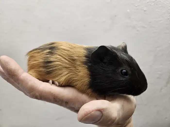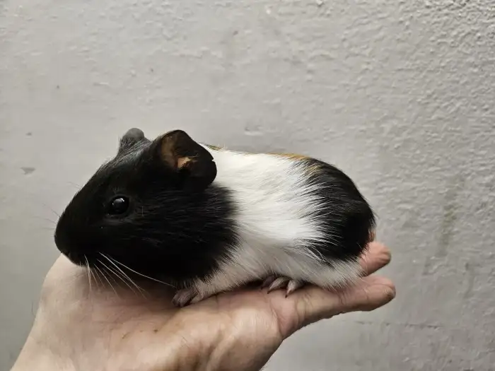 Prodám Morče domácí - Nabízím 1 samičku morčatka,černobila,chlupatá a i s rozetami.Odběr Zaloňov u Jaroměře.Cena 100 Kč.