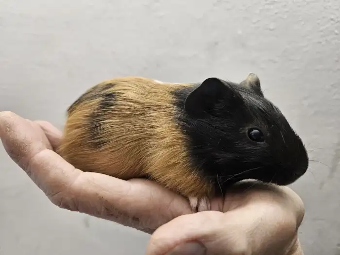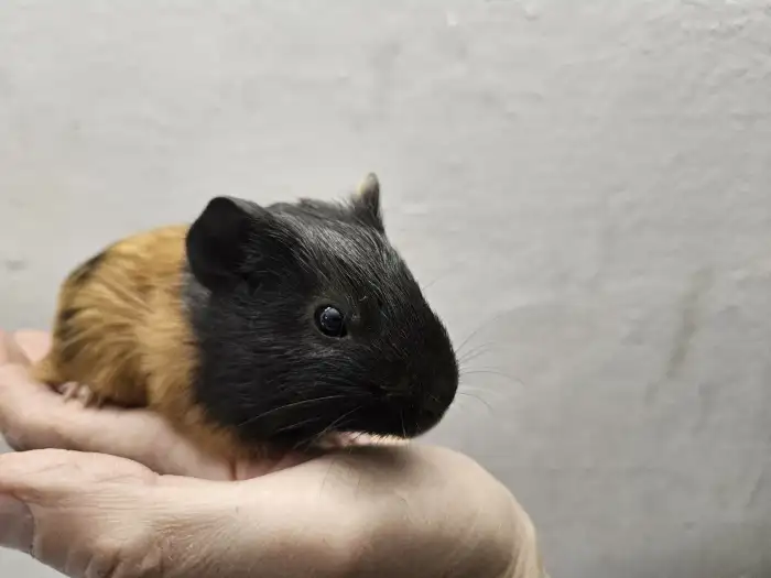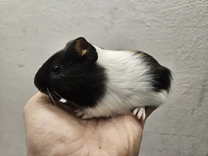 Prodám Morče domácí - Nabízím 1 samičku morčatka,černobila,chlupatá a i s rozetami.Odběr Zaloňov u Jaroměře.Cena 100 Kč.
