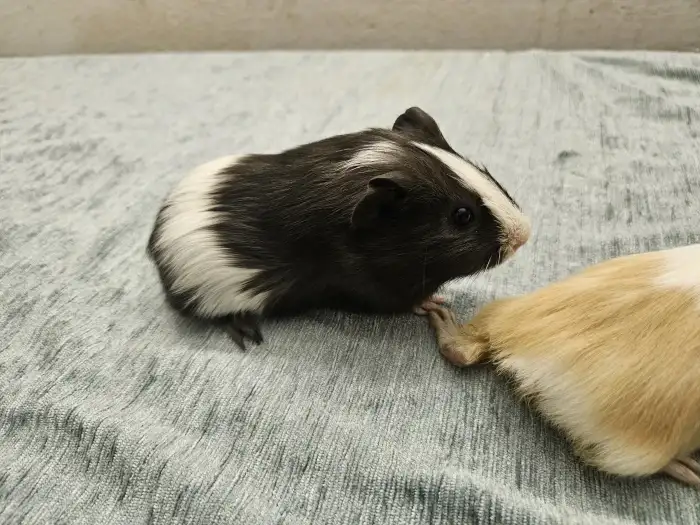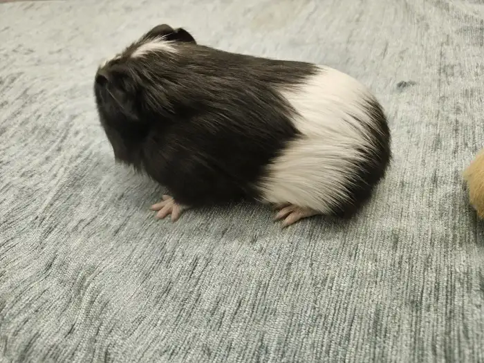 Prodám Morče domácí - Nabízím 1 samičku morčatka,černobila,chlupatá a i s rozetami.Odběr Zaloňov u Jaroměře.Cena 100 Kč.
