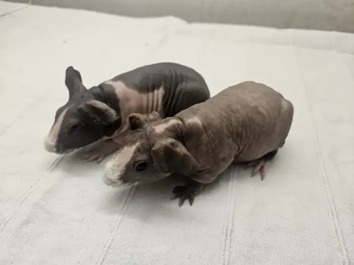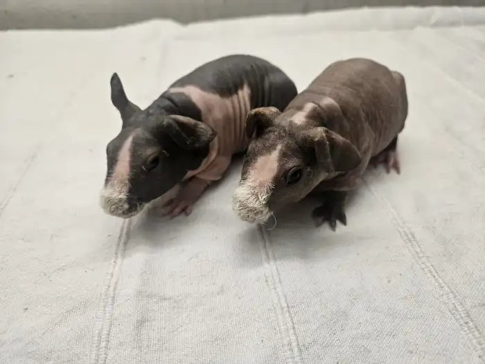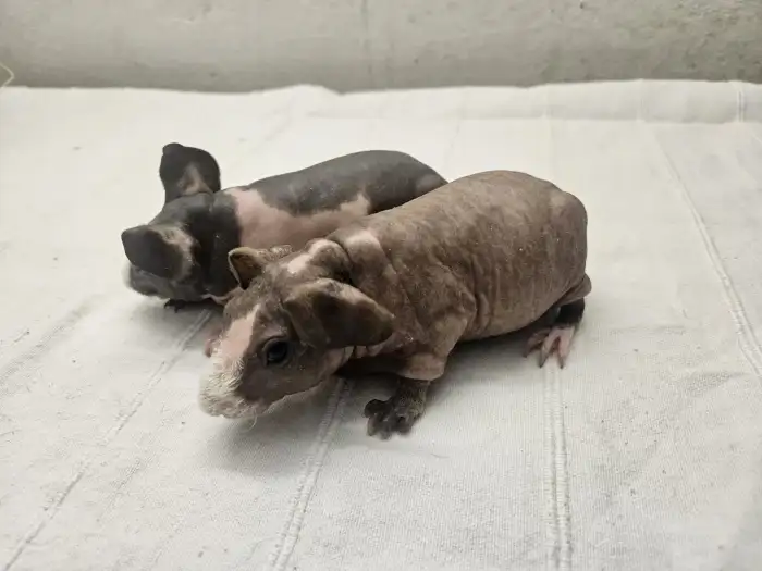 Prodám Skinny - 4 týdny stará morčata 1x skinny samec 1x dlouhosrstý samec, 1x dlouhosrstá samice
