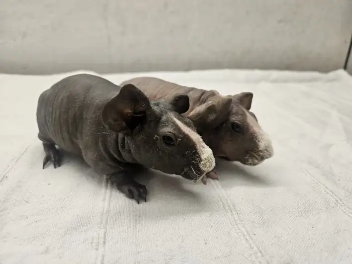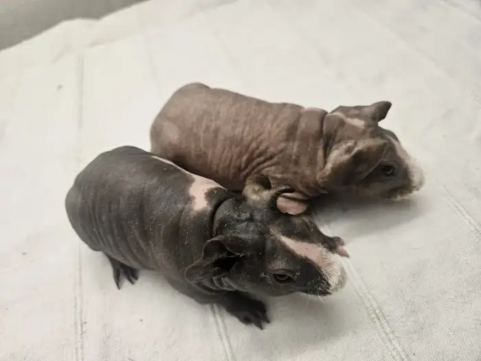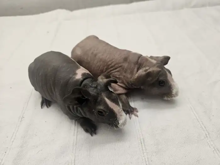 Prodám Skinny - 4 týdny stará morčata 1x skinny samec 1x dlouhosrstý samec, 1x dlouhosrstá samice