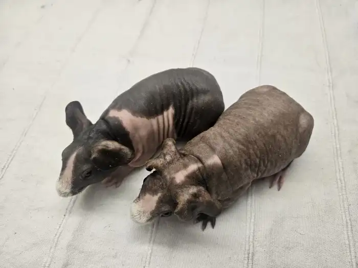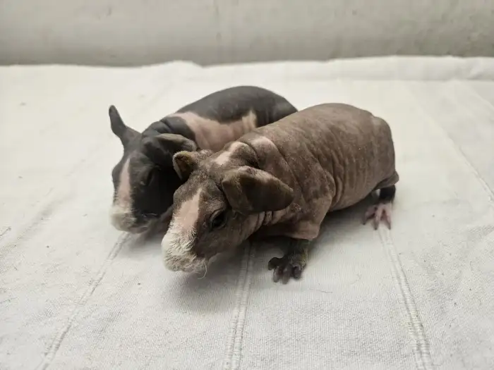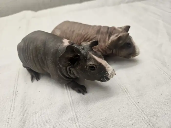 Prodám Skinny - 4 týdny stará morčata 1x skinny samec 1x dlouhosrstý samec, 1x dlouhosrstá samice