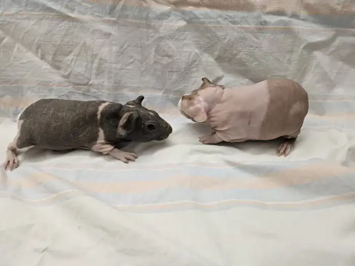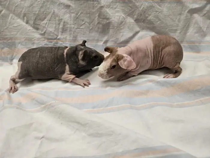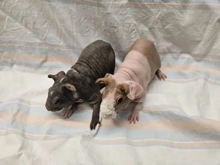 Prodám Skinny - 4 týdny stará morčata 1x skinny samec 1x dlouhosrstý samec, 1x dlouhosrstá samice