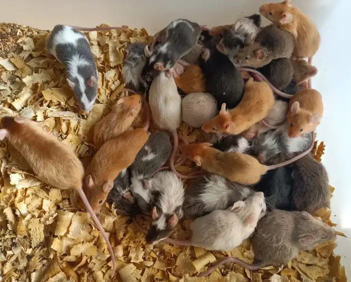 Prodám Mastomyš - Mastomyši - prodám mastomyši různého stáří, velikosti a barev, přebytek z vlastního chovu. Odběr možný ihned, platí do smazání. Cena 25 Kč, České Budějovice,více info pouze po Tel.72...