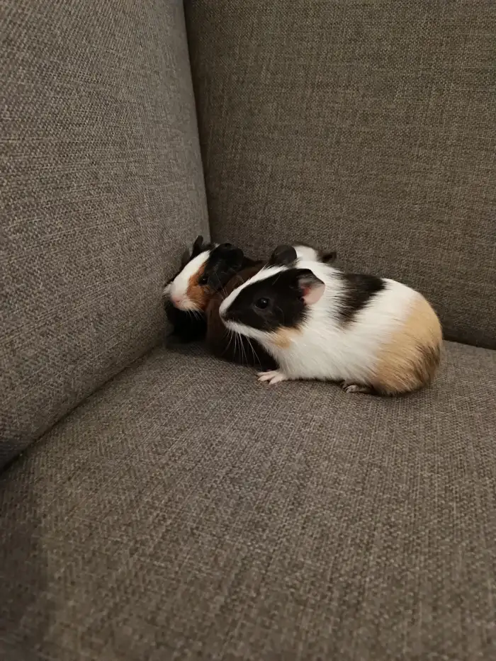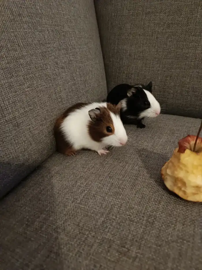 Prodám - Prodám aktivní zdravé 4 týdenní morčata - samečka a samičku hladkosrstého morčete za jedno kvalitní balení krmiva pro morčata. Sameček je tmavší, samička světlejší, oba nádherná trikolora -...