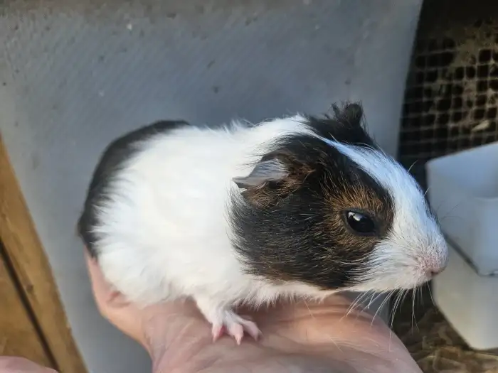 Prodám Morče domácí - Prodám šestitýdenní morčátka pěkná tříbarevná. Morčátka jsou zvyklá na děti. Cena 100 kč/ks.