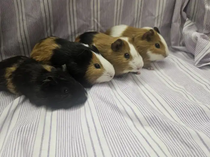 Prodám Morče domácí - Prodám 5 morčátek. Jsou samostatné, ihned k odběru. 1 samička a 4 samci.