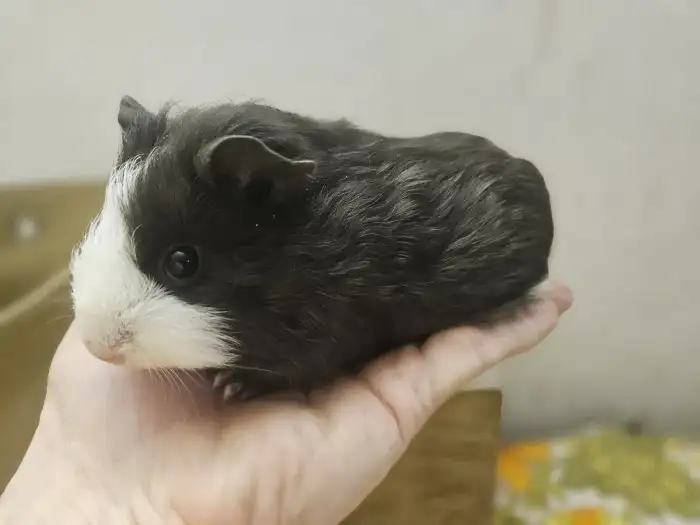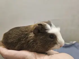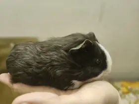 Prodám Morče domácí - Hladká trikolotrní samička bude k dispozici od 11.4. tj. měsíc po narození. Byla jedináček. Cena 250,-.