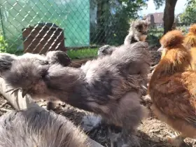 Prodám Hedvábničky - Volný kohoutek velké hedvábničky perlověšedé, kroužkovaný, vhodný i k "obyčejným" slepičkám, kde bude dělat velkou parádu 🥰. 200 Kč a kdyby chtěl někdo do výstavního chovu, i tak...