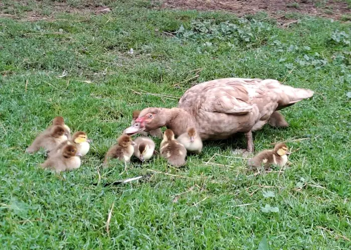 Prodám Pižmovky - Prodám 7mi-týdenní kachny a kačery z volného chovu v krásné panenské přírodě Železné hory, vylíhnuté a odvoděné kačenou, krmené pouze bio zrním a šrotem.