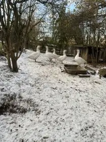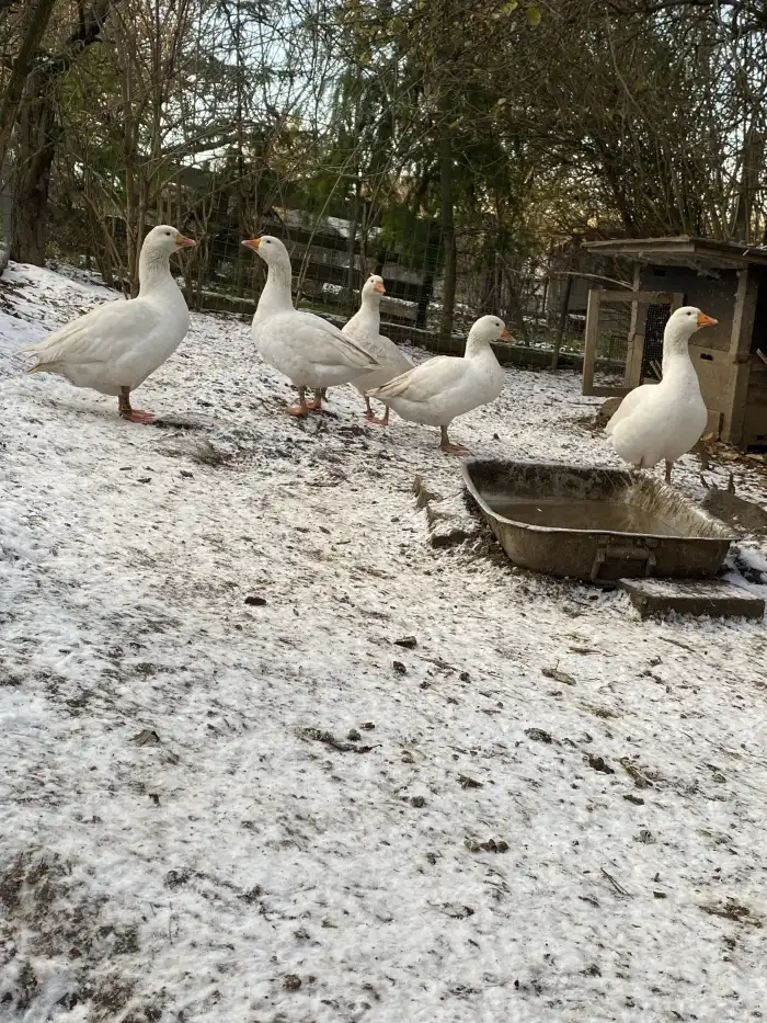 Prodám Husy české - Prodám dospělý pár hus českých. Za sebou úspěšný rok s odvodem mláďat. Stačí rok a půl. Jsou nepříbuzní. Nebráním se částečné výměně za krocany/krůty.