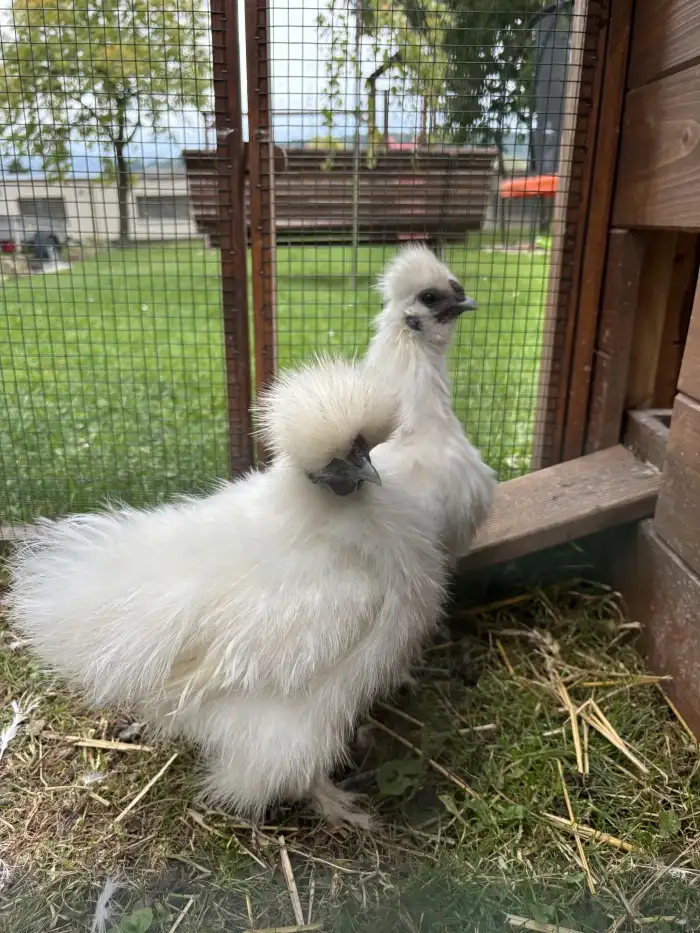 Prodám Hedvábničky - Prodám odchovy Hedvábniček , kuřata vylíhlá pod kvočnou, stáří 4měsíce , cena 700,-/ks , dále slepičku + kohouta 04/25 cena za pár 1500,-