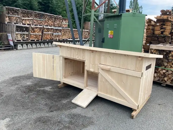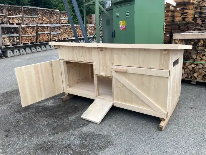 Kurník je určený pro osm až patnáct slepic a je vyrobený z masivní konstrukce z jehličnatých dřevin. Konstrukce je vyrobená z masivních hranolů o rozměru 60 x 80 a 40 x 60 mm. Strany jsou pobity palu...