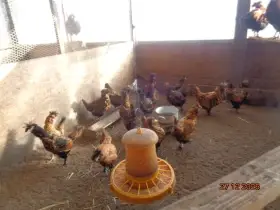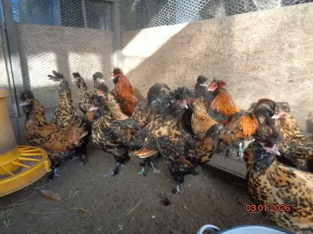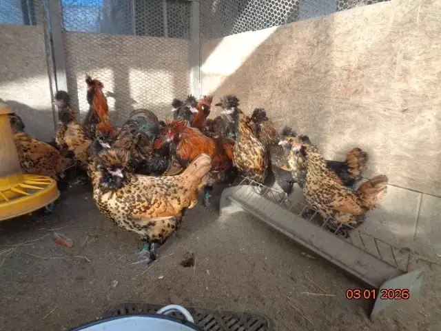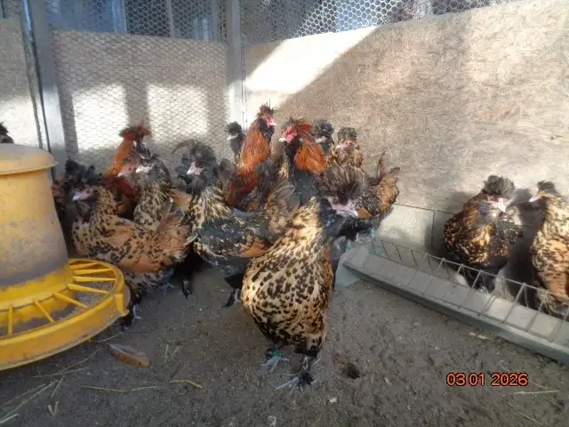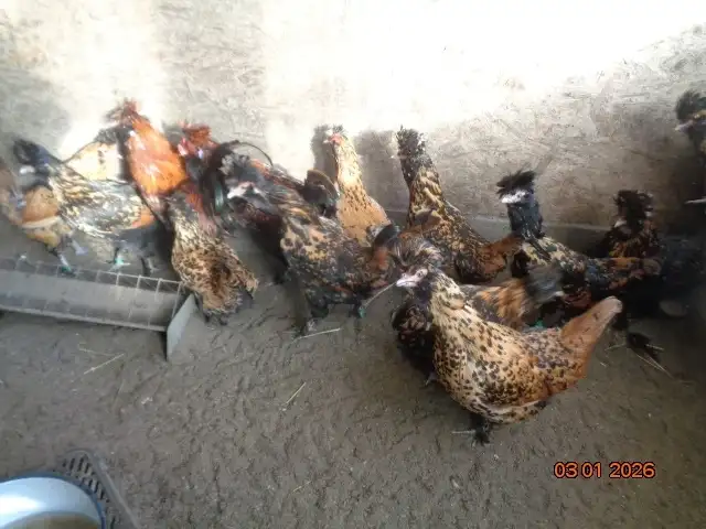 Prodám Pavlovská slepice - Ponúkam 3 sliepky a kohúta veľkého plemena Pavlovská zlatá čiernobodkovaná. Sú liahnuté 21.2.2025, sú krúžkované a vakcínované. Osobný odber v Bratislave II, po 590,-Kč/ks