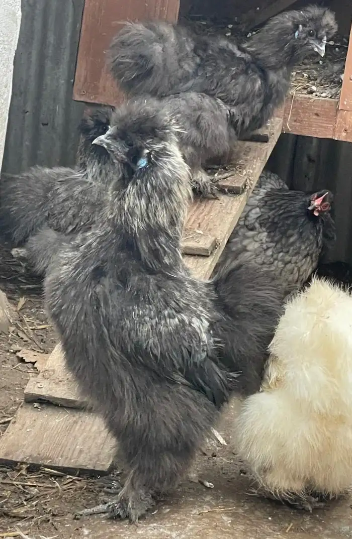 Prodám Hedvábničky - Prodáme 2 kohoutky (150kc/ks) loni vysezene a odchovane kvočnou (září 2025).