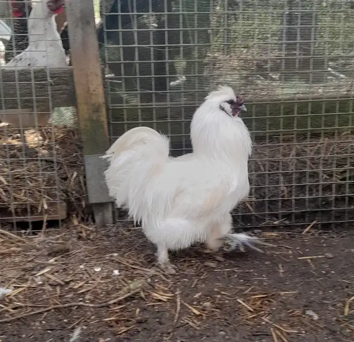 Prodám Hedvábničky - Prodám bílé hedvábničky – 2 kohouti a 1 slepička Prodám 3 hedvábničky bílé barvy – 2 kohouti a 1 slepička. Stáří: necelý 1 rok. Zdravé, zvyklé na venkovní výběh. Cena: Kohout...