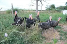 Prodám Krůtu bronzovou - Prodám dva loňské krocany, vyvedené krůtou v červenci. Jeden bronzový, druhý světlý. Nutné vyzvednutí v Záhoří u Písku. Cena 1.000 Kč/ks.