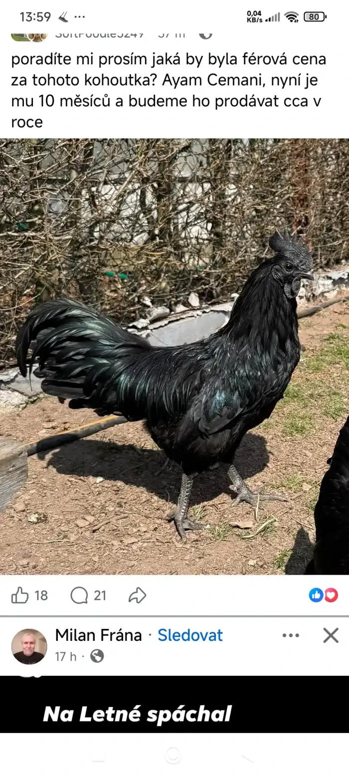 Prodám AYAMA Cemani - Prodám Kohoutky Ayam Cemani Kohoutci líhnutí 10.1. z NV od pana Petrase mají sbalený batůžek a mohou hledat nový domov. Je jich celkem asi 6, takže možnost výběru. Včeláko...