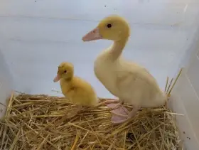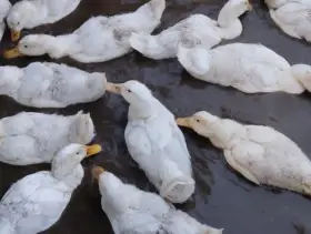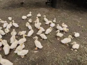 Prodáme kachňata kachen pekingských(bílá brojlerová kachna). Živou hmotnost 3 kg dosahují již ve věku 42 dnů čili 6 týdnů. Živé jateční kachny nabízíme za cenu 45 Kč za kg živé hmotnosti.