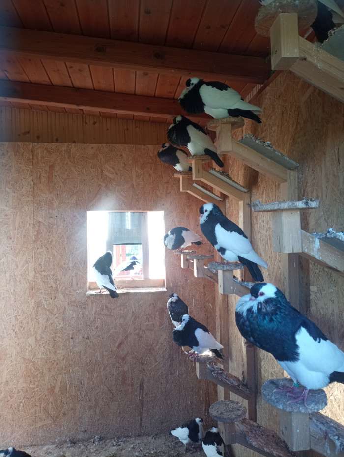 Holuby sú cez zimu zavreté ,preto že som mával veľké straty.Holuby sú zapárené 15.3 a koncom mesiaca až do zimy sú voľne pustené.Môj základ modrých sedlatých pochádza už od zosnulého pána Antonina Červinky z Moravy s ktorým som sa osobne poznal.Do dnešného dňa mám ešte 3 kusy.Minulý rok som doniesol holuby od pána Evžena Kufu , ktoré by mali byť posilou na tohto ročný odchov mláďat.Modré čiernopruhé a modré lysé pochádzajú od Františka Štepánka a od pána Novotného. Moje holuby zatiaľ nemajú problémy zo stavaním aj keď sa nájdu jedince ,ktoré len stavanie naznačujú ,alebo niesu dokonalé.Tieto aj keď sú pekné typové sa snažím s chovu vyradiť.Samozrejme nie všetko vychádza tak ako si predstavujem. Chovu zdar .