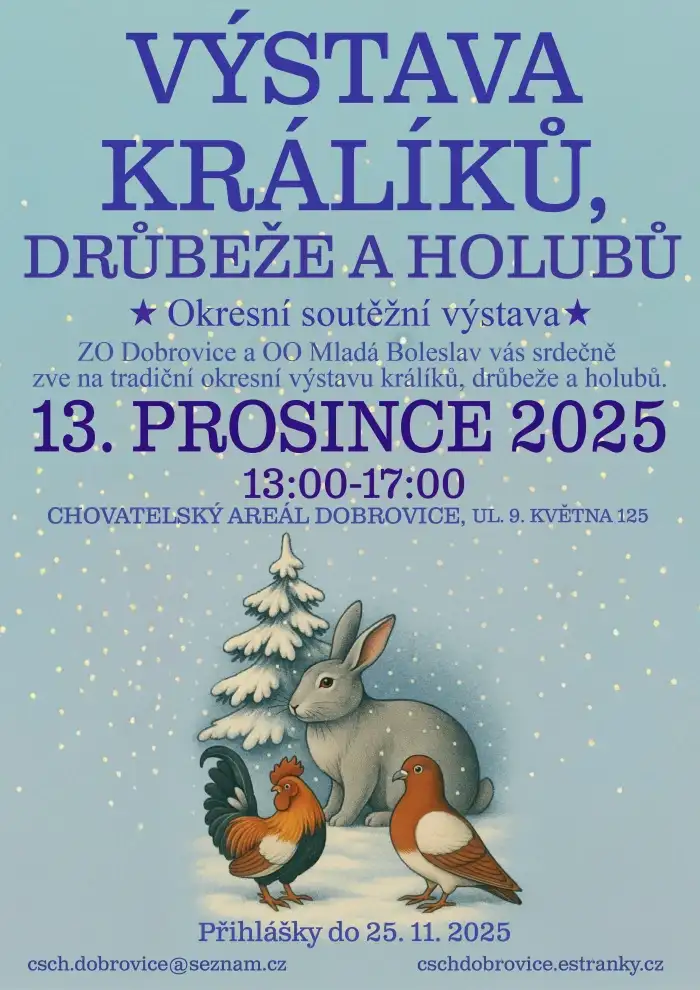 Klub chovatelů strukturových holubů zve na svou propagační speciální výstavu, která se uskuteční dne 3.1.20265 ve Slavkově u Brna. Posuzování pávíků výběrovým způsobem za účasti veřejnosti provede Jo...