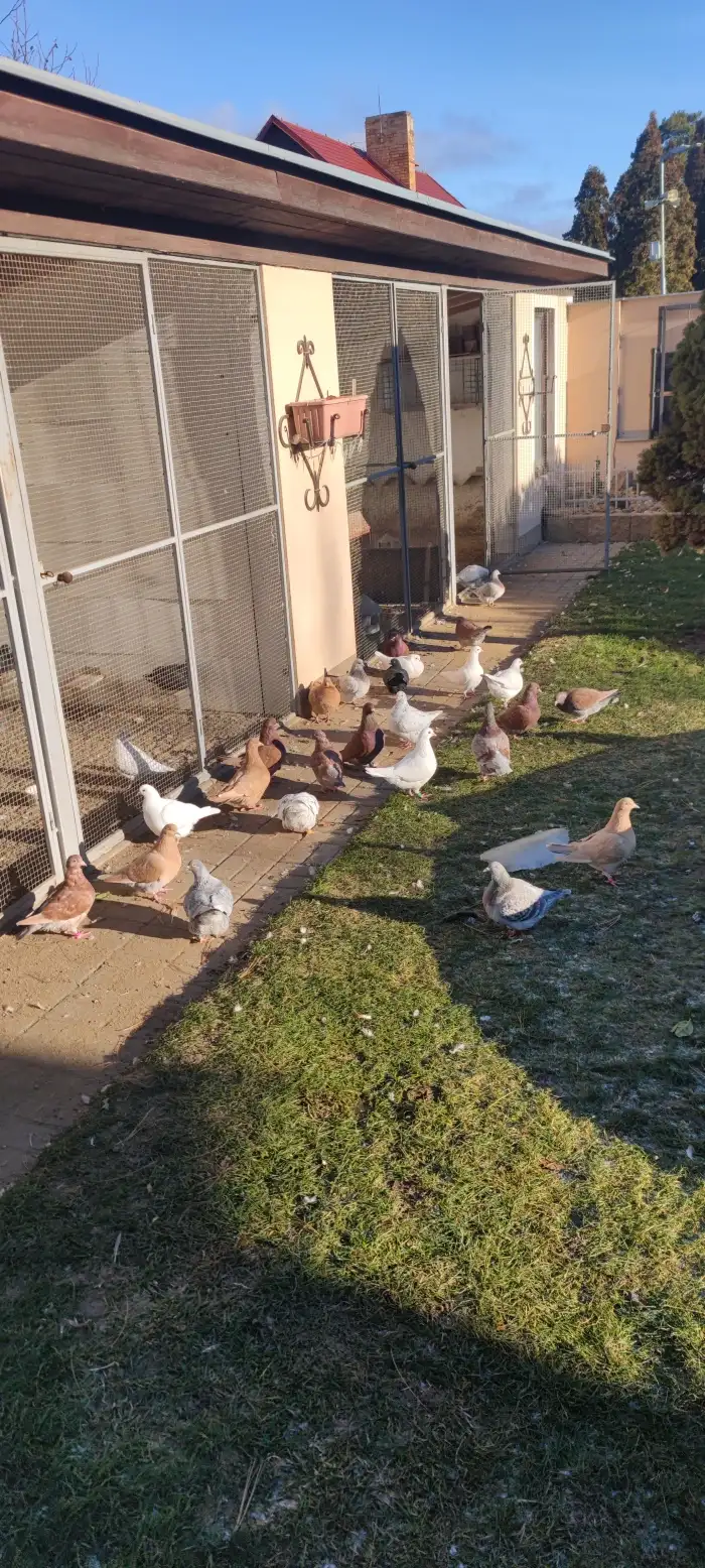 Prodám Českého staváka - Prodám krásnou páru česky stavak bily a stříbrný. z kapacitních možnosti holubníku.