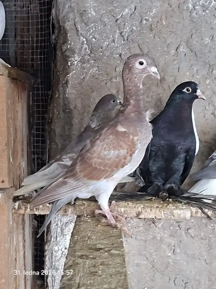 Prodám holubici Amsterodamského voláče žlutá anglická kresba, rok 2025. 7.2. mohu dovést na Trh Libčice nad Vltavou.