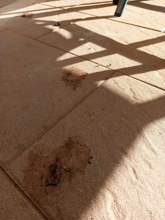 hlavu , vnitřnosti, spousta krve. denně to musím uklízet a drhnout.