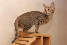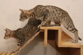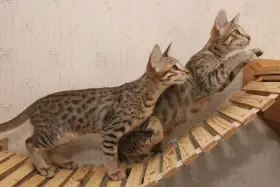 Predstavujeme vám skutočný klenot medzi mačkami – Savannah, plemeno, ktoré spája divokú eleganciu afrického servala a šarm domácej mačky. Nie je to len domáci miláčik – je to živý kúsok prírody, ktorý sa stane ozdobou vášho domova a súčasťou vašej rodiny.