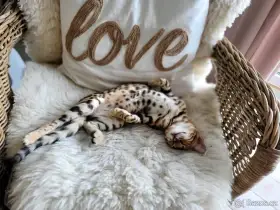 Prodám Bengálskou kočku - Nabízím k prodeji posledního volného kocourka s PP z chovatelské stanice Fair Legends. Otec import z Polska /poslední dvě fotografie/. Koťátka s námi vyrůstají v domě, jsou...