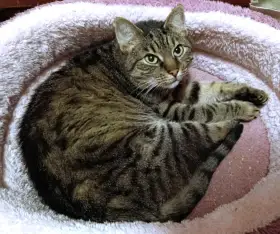 Rola, kočka, cca 1 rok (ev. číslo 2025/10/10), KASTROVANÁ, očkovaná, test FIV/FeLV negativní, č. mikročipu 9810200007809077. 3 kočičky (2 kluky a 1 holku) jsme přijali od starších manželů, kteří ma...