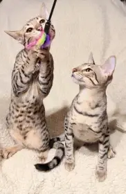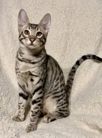 Hledá se dokonalý domov pro krásná Savannah koťátka F6SBT z CH.S. Ammy od Skal. Naše malé šelmičky s rodokmenem a registrací TICA (USA) právě čekají na své nové rodiny. Narodili se 21. června a i když už mají 5 měsíců, na jejich přátelské, hravé a mazlivé povaze to vůbec nic nemění – bez váhání navazují kontakt i s cizími lidmi.