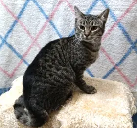 Kazeta, kočička, narozena cca v dubnu 2025 (ev. číslo 2025/08/04), očkovaná, č. mikročipu 981020000781008. Budoucí kastrace v dospělosti je podmínkou adopce. 4 kočičí sourozence jsme přijali z...