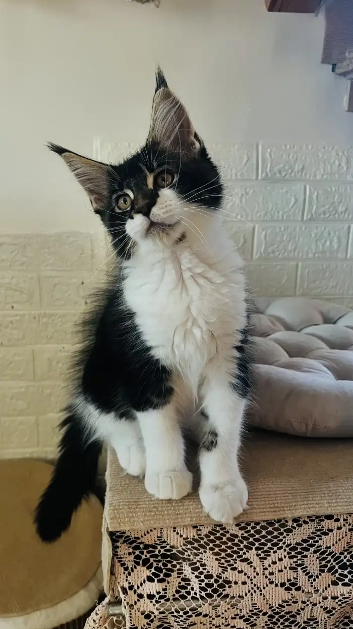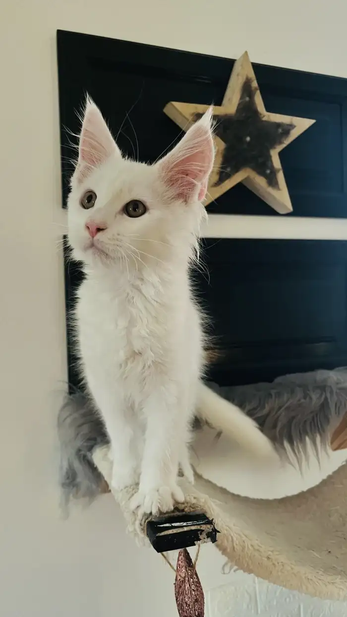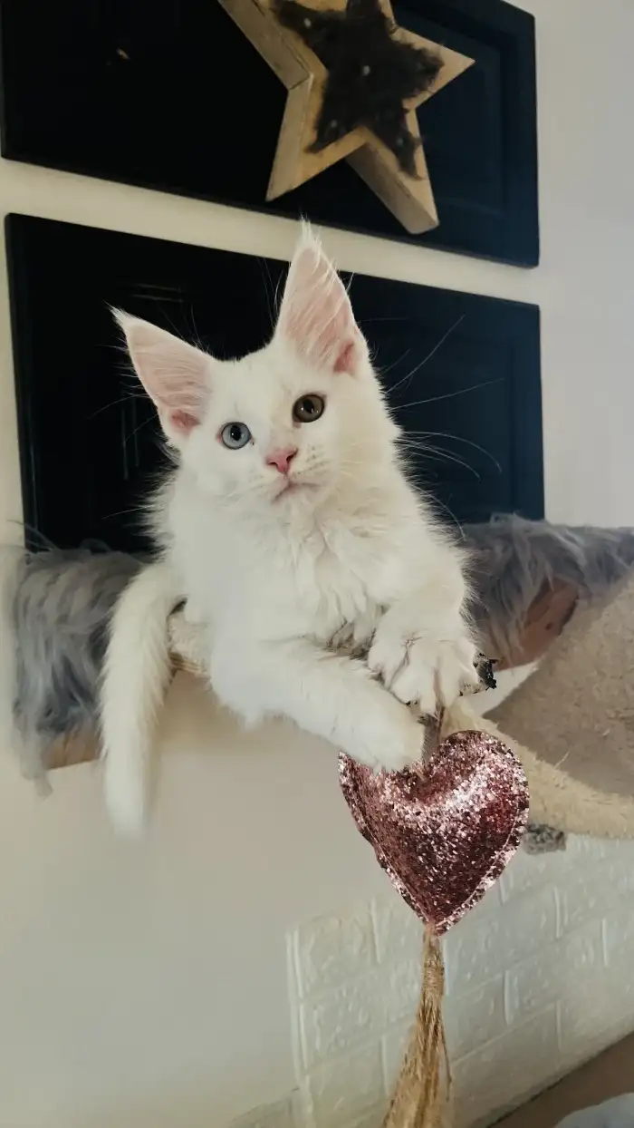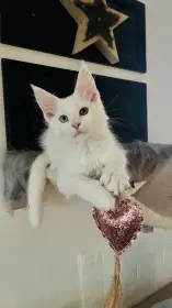 Prodám Mainskou mývalí kočku - Přijímám rezervace na 3 bílé kocourky z testovaného chovu (všechno n/n). Kocourci jsou po výborných rodičích, kteří jsou terapeuti ve felinoterapii, a otec je úspěšný vý...