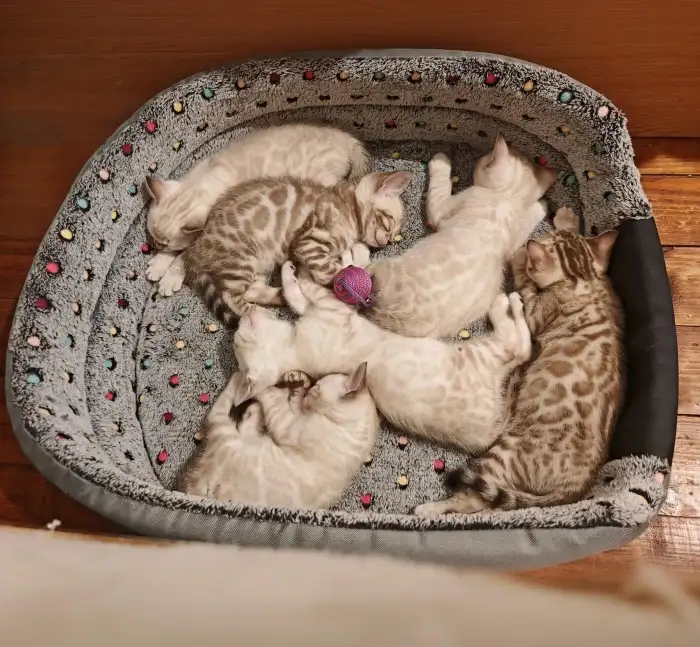 Prodám Bengálskou kočku - Chovatelská stanice Wincat registrovaná u organizace TICA, nabízí bengálskou kočičku z vrhu Z s PP ze zdravého chovu po testovaných rodičích. Kočička bude v době odchodu (ko...