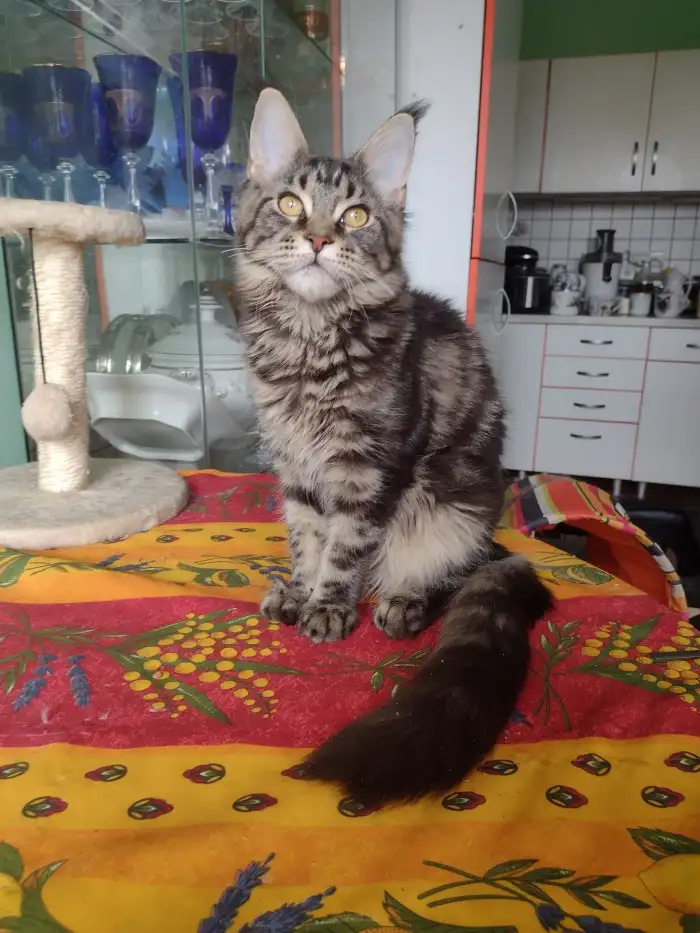 Prodám Mainskou mývalí kočku - Nabízíme poslední volnou kočičku MCO s PP. Kočička pochází z malého testovaného chovu. Má modrý kožíšek se stříbrem a kresbou. Kočička má moc milou povahu, neskutečný ma...