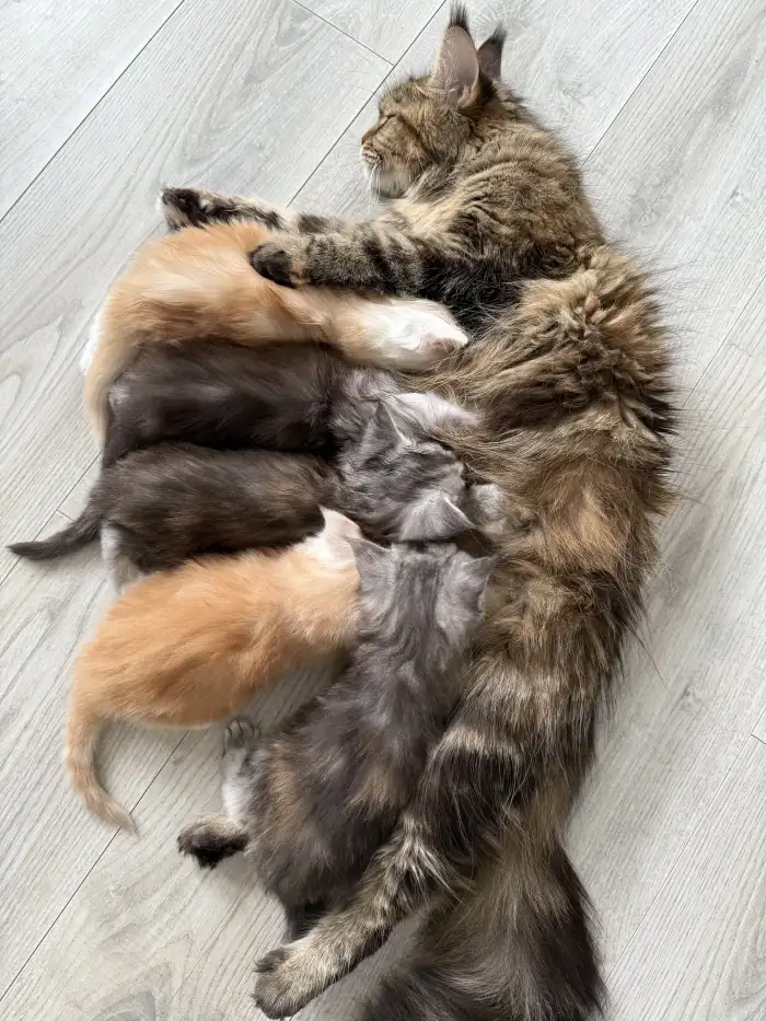 Prodám Mainskou mývalí kočku - Uriel je mainská mývalí kočička s výborným rodokmenem, krásnou, nádherně zabarvenou srsti. Do nového domova půjde plně očkovaná, čipovaná a vykastrovaná. Hledám pro ní d...