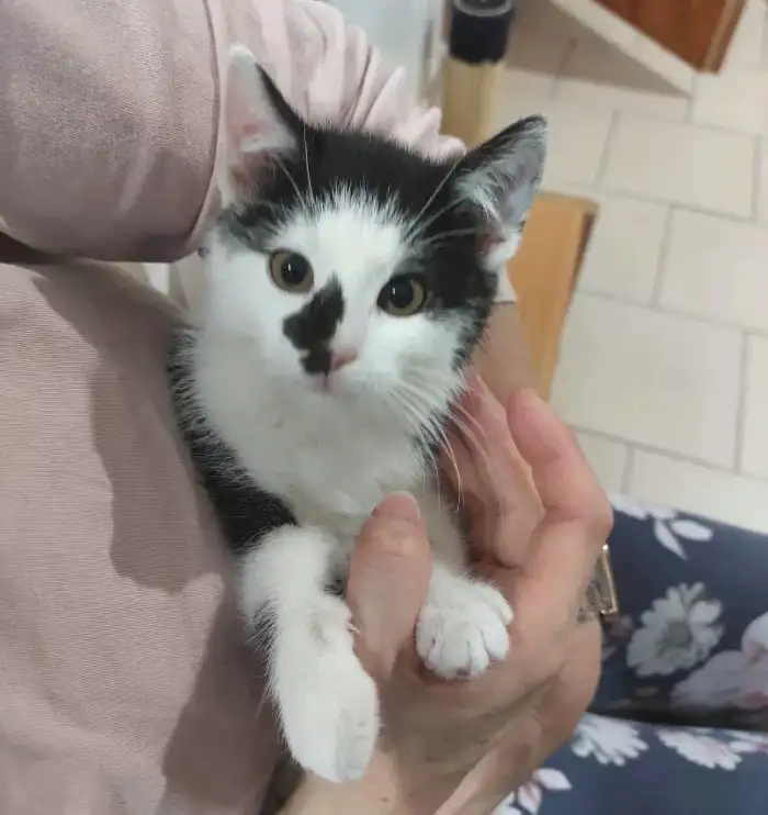 Porthos, kocourek, narozen cca 8/2025, kastrace v dospělosti je podmínkou adopce. Dne 19.11.2025 někdo nechal v krabici tři koťata (kluci) u Zoobutiku ve Schwaigerově ulici. Porthos je velmi mil...