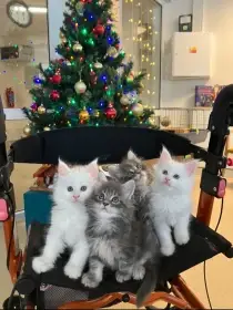 Prodám Mainskou mývalí kočku - Hledáme po naše dva mazlivé kocourky a poslední holčičku hodné lidičky, kteří dají kočičkám moc lásky a plné mističky masíčka. Kočičky jsou očkované, čipované, testo...
