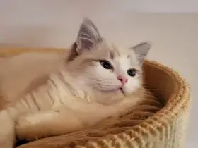 Prodám Ragdolla - Nabízíme koťátko-kocourka Ragdolla s PP, zbarvení seal bicolor, narozené 17.9.2025. Do nového domova bude odcházet kompletně naočkovaný a odčervený, socializovaný, zvyklý na běžný r...