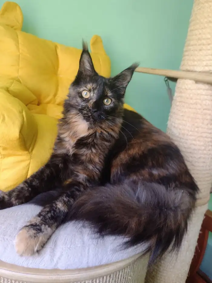 Prodám Mainskou mývalí kočku - Valérie je černá, mramorovaná kočička a Xíta je želvovinová kočička. Obě jsou typově i povahově úžasné, do nového domova půjdou plně očkované, čipované a vykastrované. R...