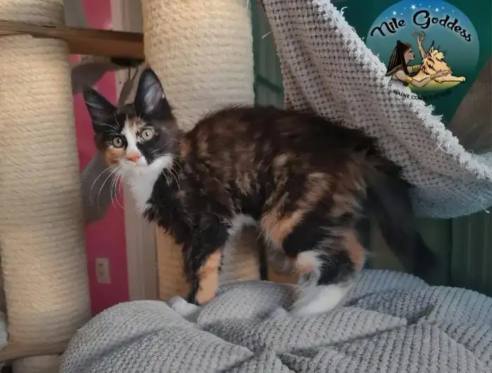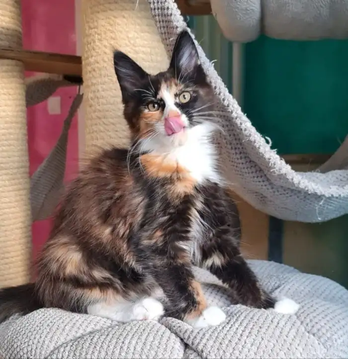 Prodám Mainskou mývalí kočku - Tato kočička, která má poněkud zvláštní zabarvení a je tříbarevná, právě hledá nový domov. Je hravá, mazlivá, přítulná a vrnící. Umí chodit na kočičí záchod, je odčerven...