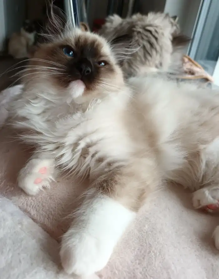 Prodám Ragdolla - Nabízím posledního volného kocourka Ragdoll zbarvení seal mitted . Vymazlený socializovaný, vyrůstající v rodině se psem a dalšími kočičkami. Miláček který spí v posteli. Naučený na...